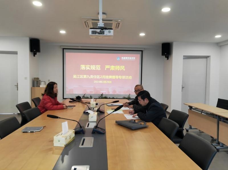 2月28日上午,吴江区第九责任区陈三林、钱福江两位责任督学对杨嘉墀实验学校小学部进行了“落实规范 严肃师风”专项督导。 实地踏看校园,了解执行规范、食堂食品消防安全等情况,肯定学校在心理健康教育方面的工作和师德师风方面开展的活动。
