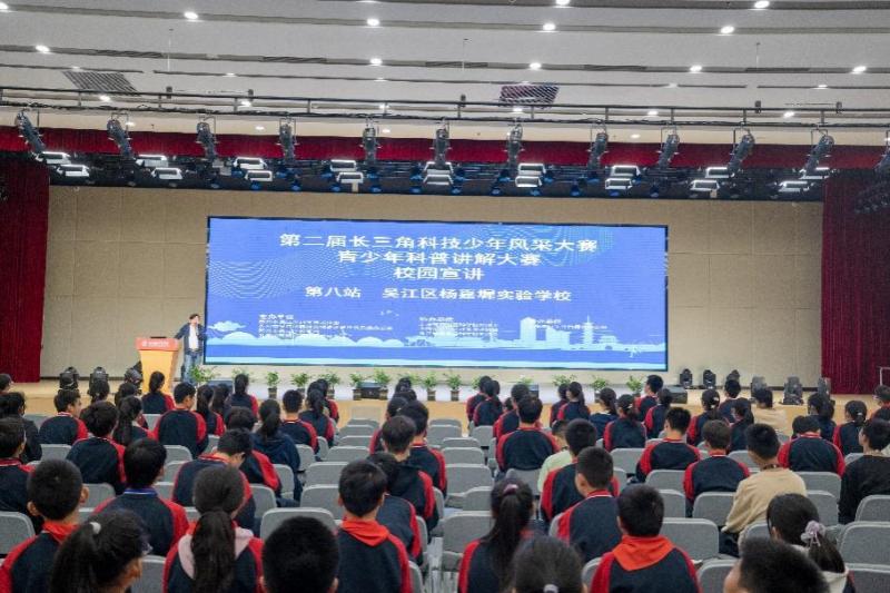 4月30日下午,长三角科技少年风采大赛组委会秘书长刘健,在学校报告厅为五年级及初一学生带来科普讲座《中国的北斗 世界的北斗》,并介绍了第二届长三角科技少年风采大赛青少年科普比赛的参赛事项。
