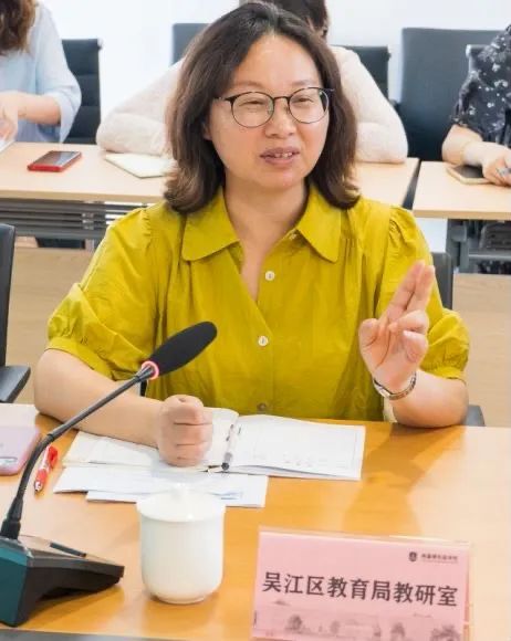 下午召开的研讨交流会上,雷浩教授、吴江区教育局教研室主任江山分别对小学语文和小学英语两门学科的单元学历案的设计做了专业细致地点评和指导。