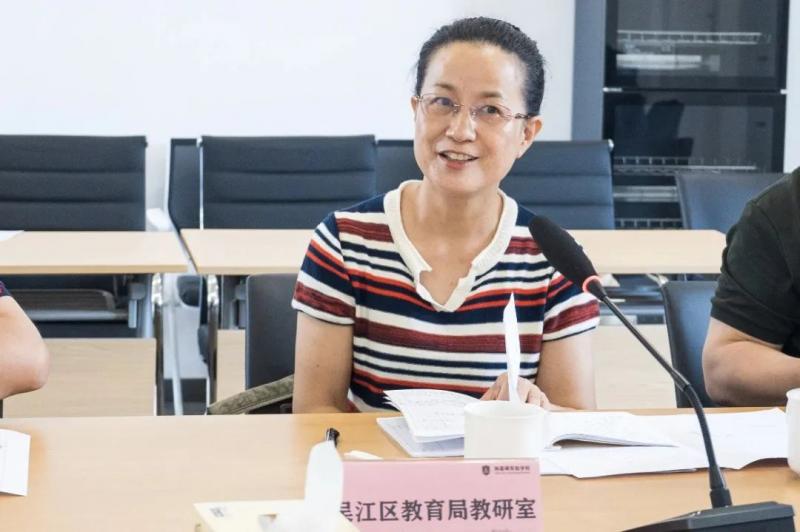 为进一步深化新课程改革,推进高质量发展,提升教师单元整体教学意识,推动大单元学历案落地。6月14日,吴江区国家课程高质量实施工程联盟校、九年一贯制创新联盟校活动在杨嘉墀实验学校举办。吴江区教育局教研室江山主任、钱建芬副主任,艺术教研员王展鹏,综合实践教研员朱琴与各联盟校骨干教师参与本次活动。本次活动由吴江区教育局教研室钱建芬副主任主持,活动采取线上同步直播供全校教师观看。
